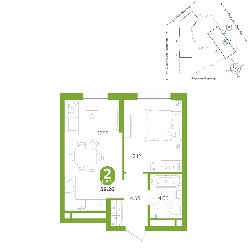 скидка 1 508 000 ₽ Окна на две стороны Вид на улицу