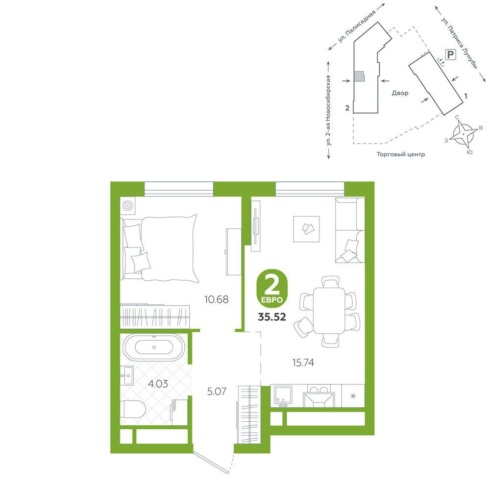 скидка 1 508 000 ₽ Окна на две стороны Вид на улицу