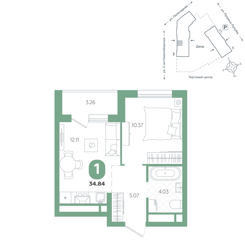 скидка 1 506 000 ₽ Вид во двор Лоджия