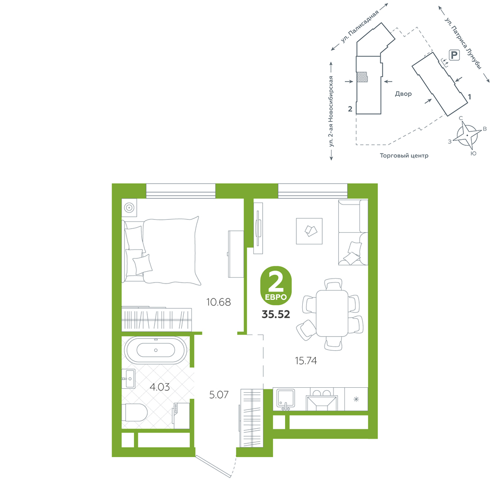 скидка 1 508 000 ₽ Окна на две стороны Вид на улицу