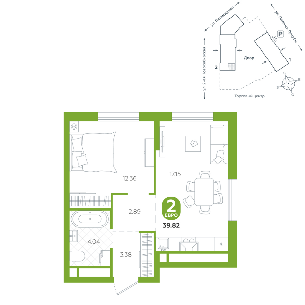 скидка 1 620 000 ₽ Окна на две стороны Вид во двор Вид на улицу