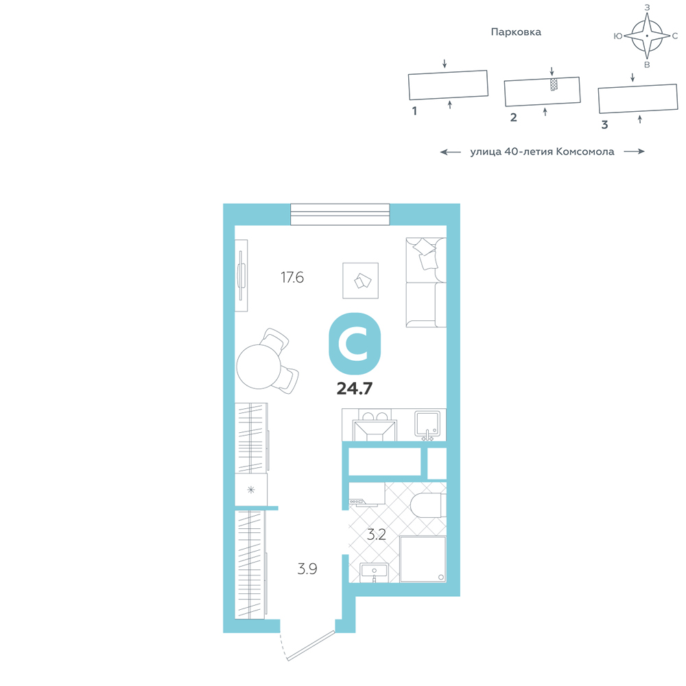 Студия, 24.7 м²