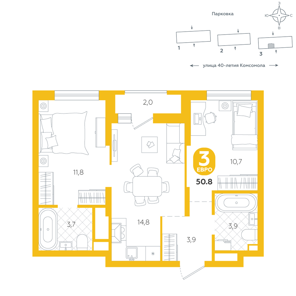 скидка 1 976 000 ₽ Два санузла Мастер-спальня Вид на улицу Лоджия