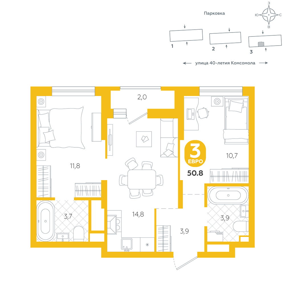 2-комнатная, 50.8 м²