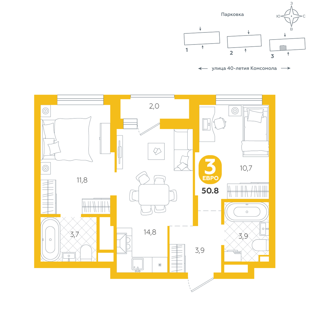 скидка 2 004 000 ₽ Два санузла Мастер-спальня Вид на улицу Лоджия