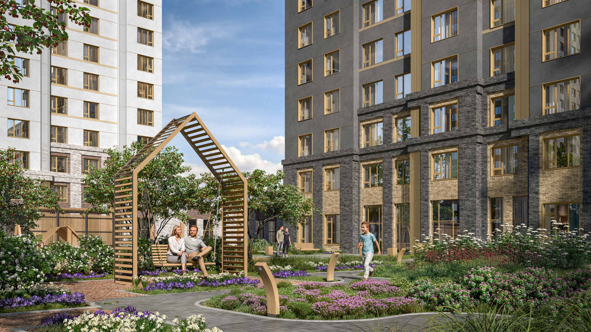 В каждом приватном дворе мы учли места для тихого отдыха и спортивных занятий: разместили столы для настольного тенниса, гамаки и шезлонги. Для детей организовали несколько...
