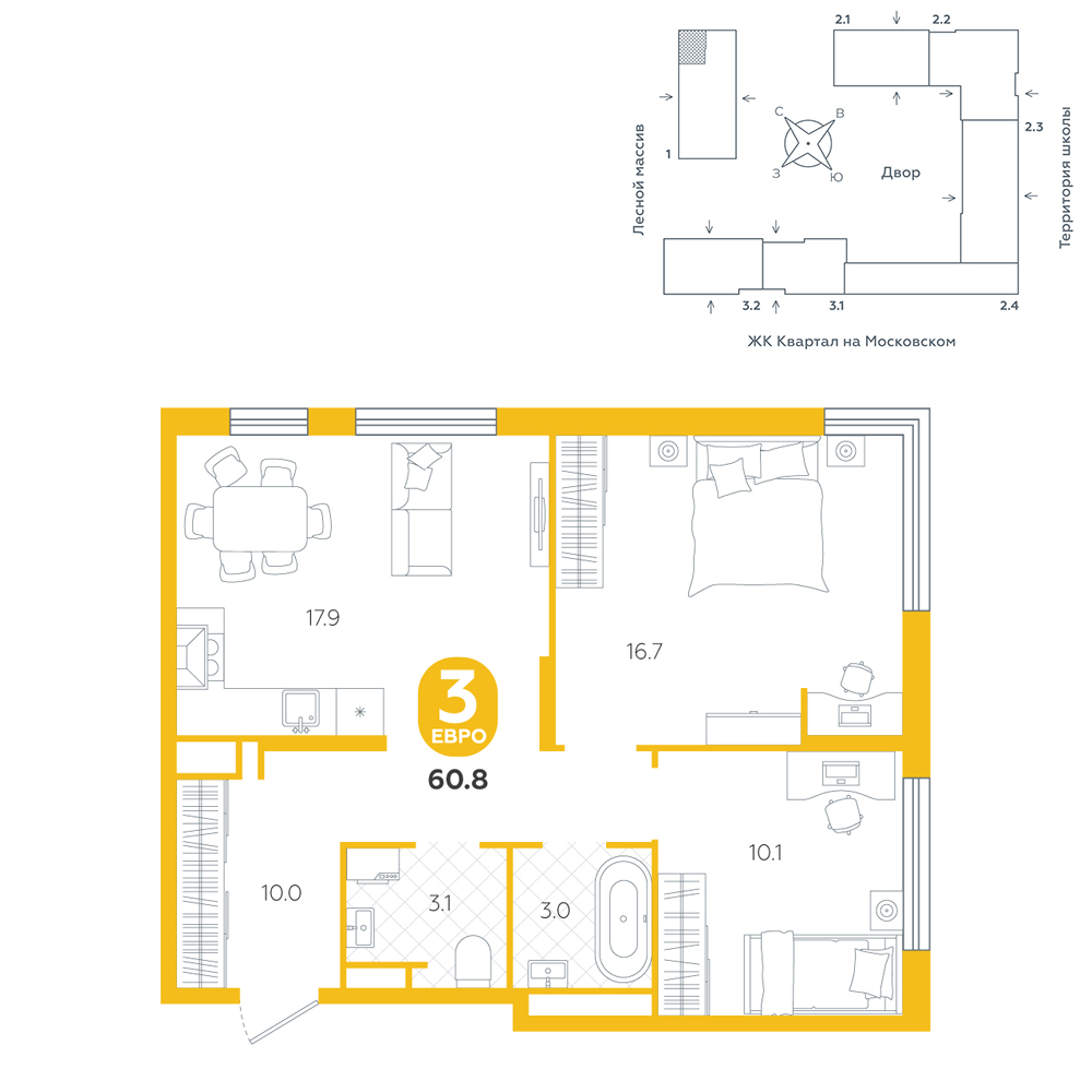 2-комнатная, 60.8 м²