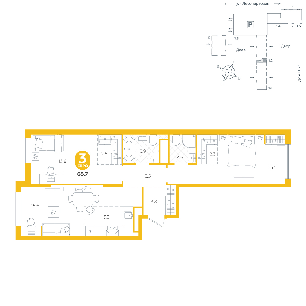 скидка 2 010 000 ₽ Два санузла Мастер-спальня Гардеробная Окна на две стороны