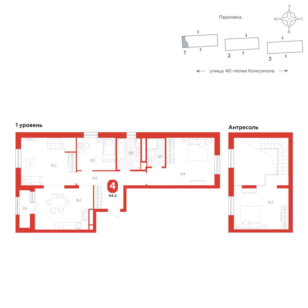 4-комнатная, 94.2 м²