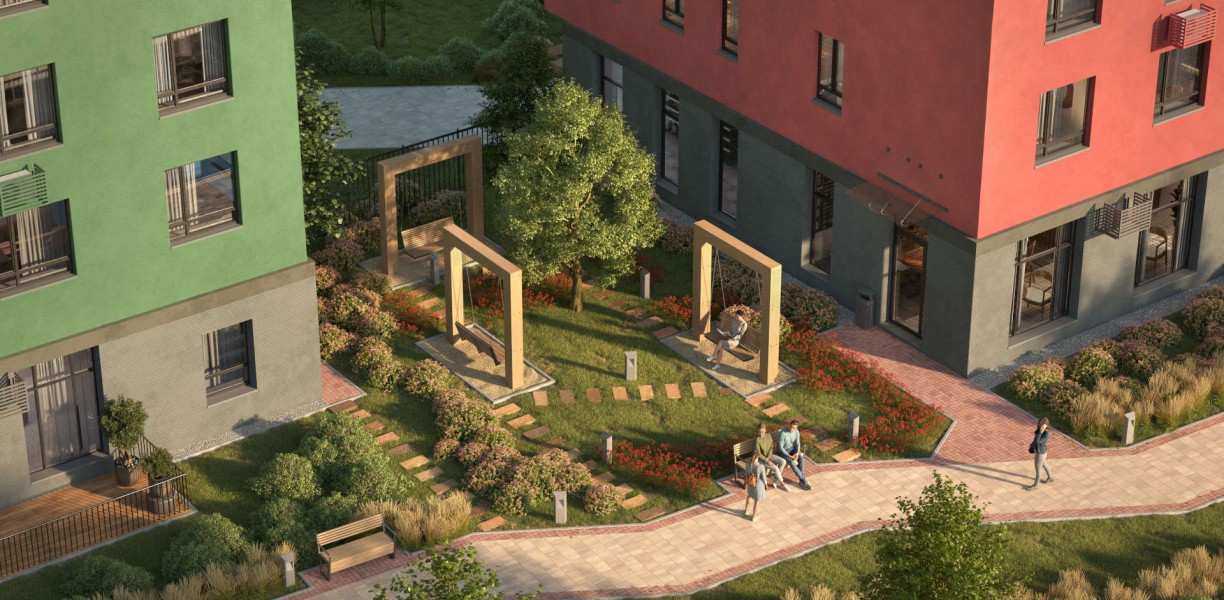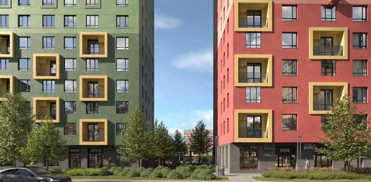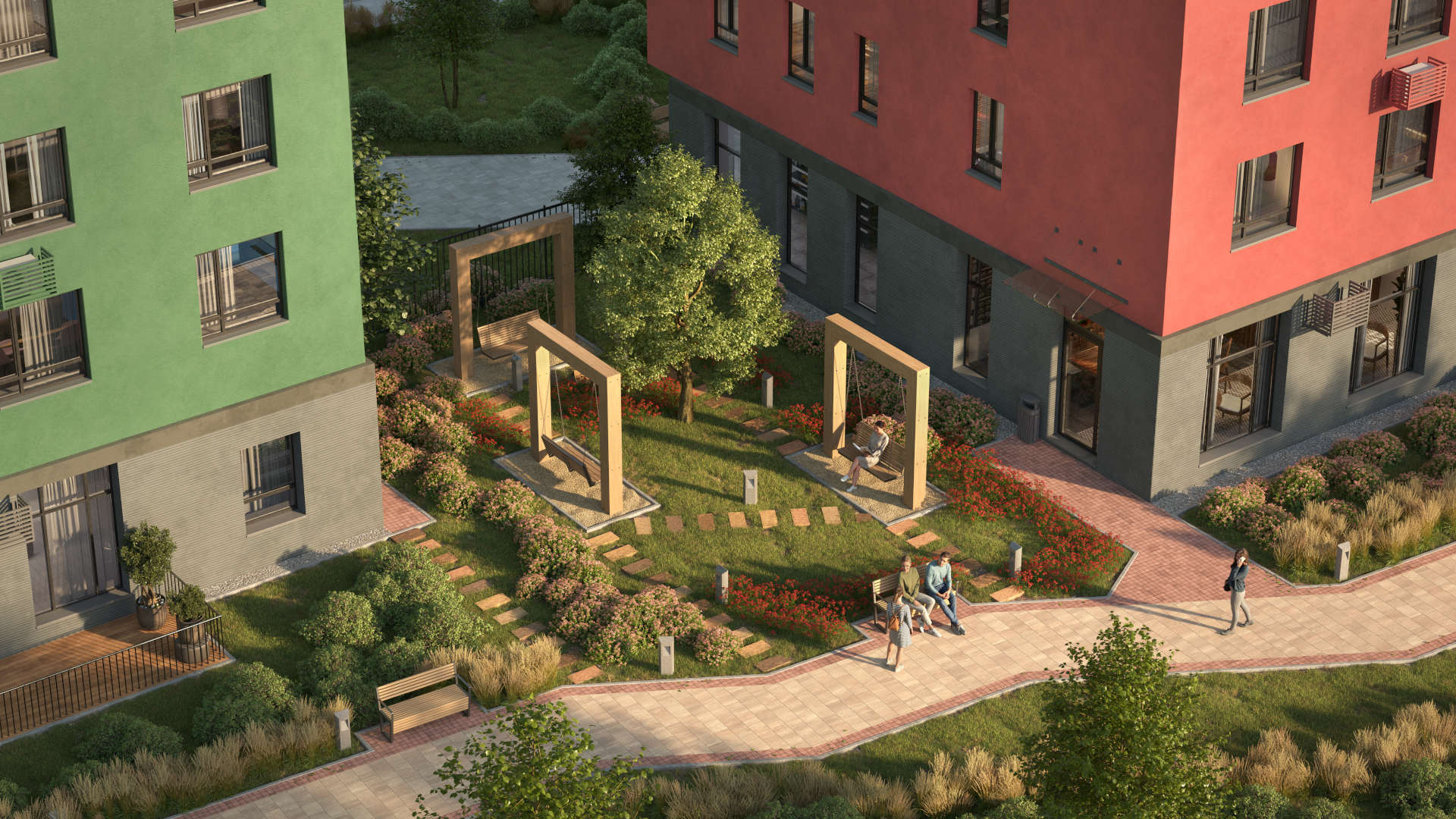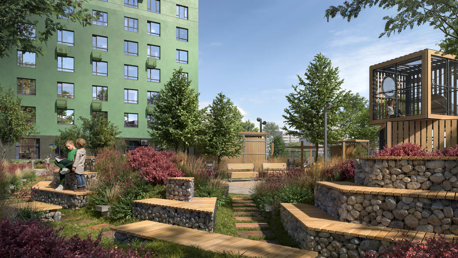 «Комсомольский» находится в районе ЖБИ и спроектирован по принципу «15-минутного города». Детские сады, школы, спортзалы и центр культуры — все рядом.
